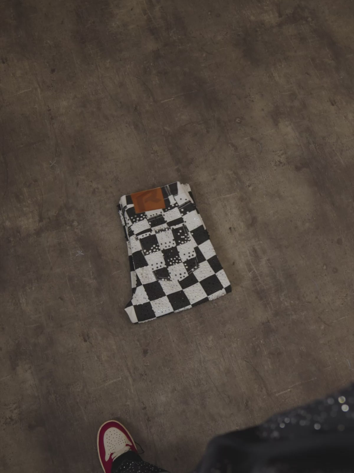 • custom checkered fabric with rhinestones